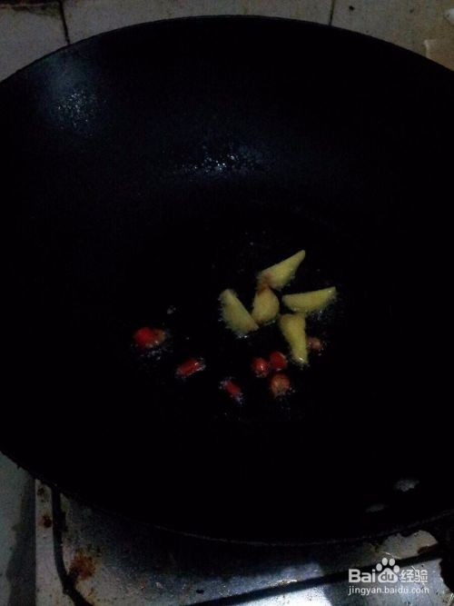 国内入油,放冰糖,冰糖稍稍融化即可下姜片和红椒。