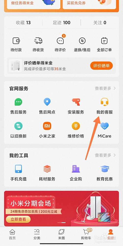 在小米商城APP找到【我的客服】。