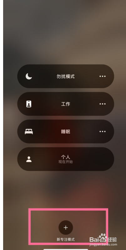 1、在手机主屏幕右上角下滑出控制中心,长按专注图标进入专注模式页面。