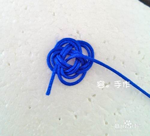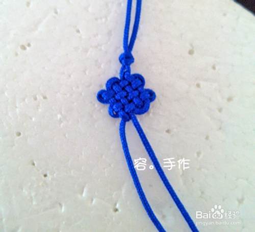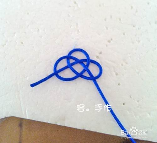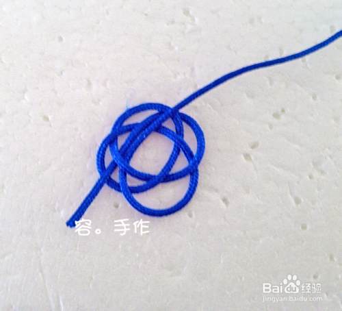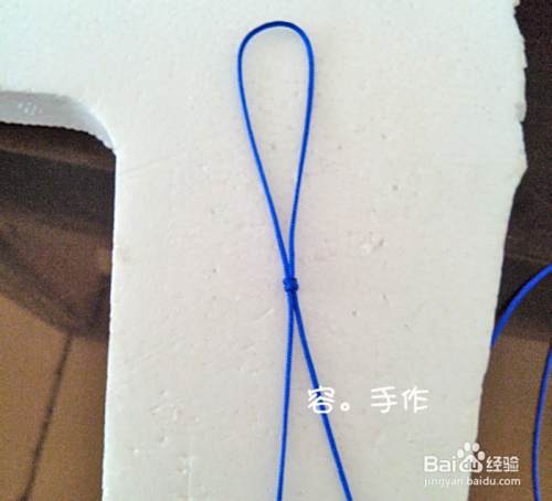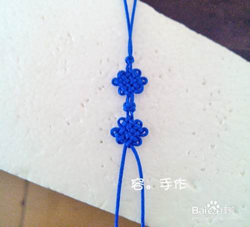 宝蓝色玉线对折预留一段约4厘米处编双联结。附双联结的编法步骤。