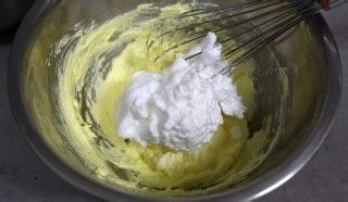 取1/3蛋白糊入蛋黄糊中,搅拌均匀;