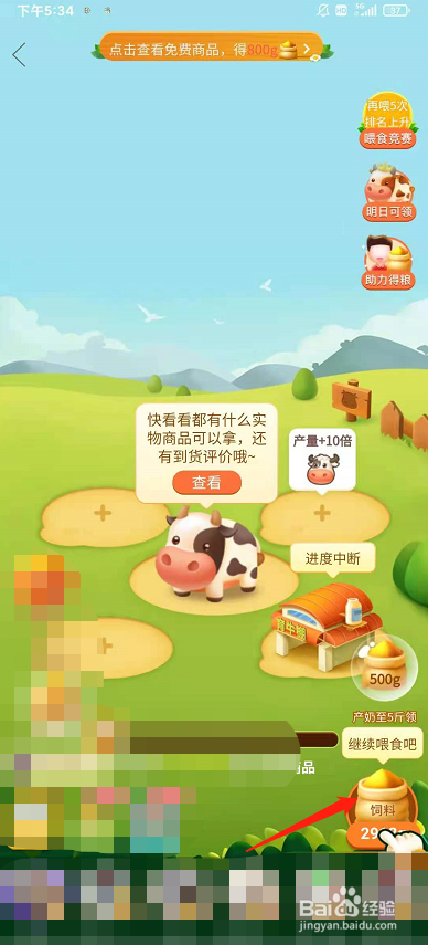 进入到多多牧场,点击右下角的饲料按钮。