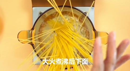 1锅中放入清水,大火煮沸后,下入意大利面。