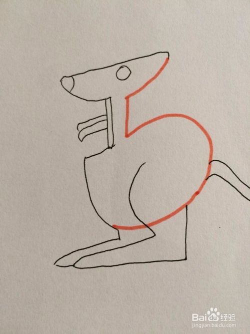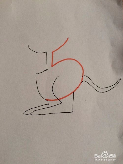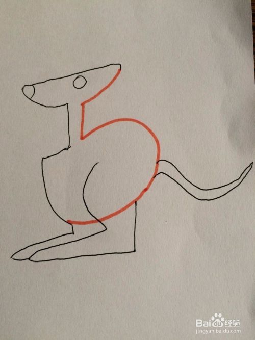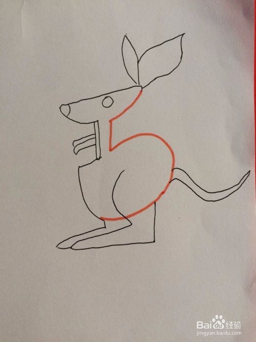 然后再画上一条长长的尾巴。袋鼠的长尾巴在跳跃中能起到平衡的作用哦。