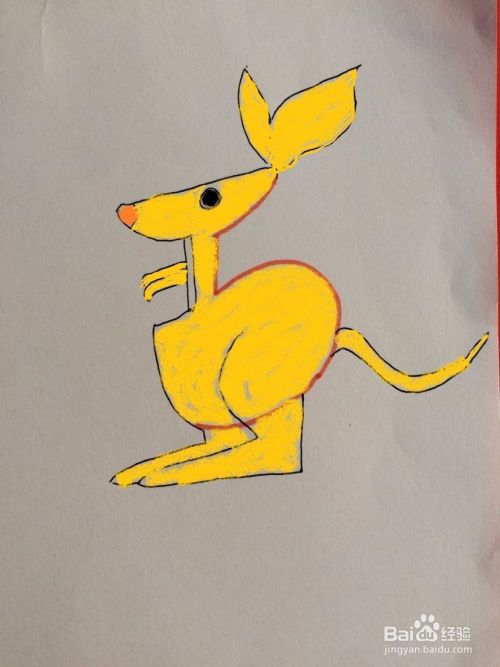 然后填上喜欢的颜色,数字5画袋鼠就完成了。