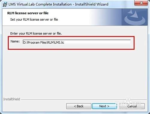 当出现以下对话框时,将 Name 指定为前面保存的 LMS.lic,例如前面为 D:\Program Files\RLM 下的 LMS.lic 文件,如下图。(需要根据自己的情况选择 LMS.lic 的位置)然后,点击【Next】按钮。