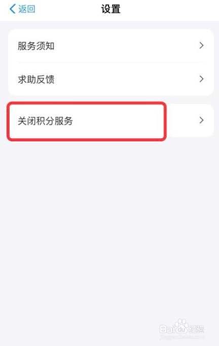 在【设置】界面,选择并点击【关闭积分服务】选项。