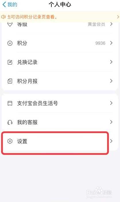 在【个人中心】界面,选择并点击【设置】选项。