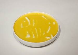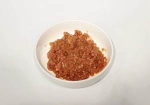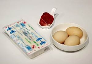 将鸡蛋液倒入装内酯豆腐的碗盘子里