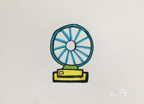 最后风扇叶描上蓝色,底座涂上金黄色就画好啦!