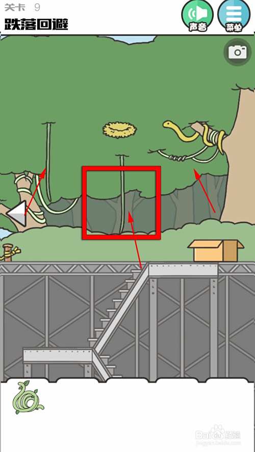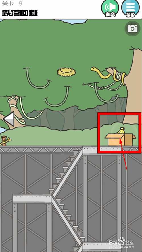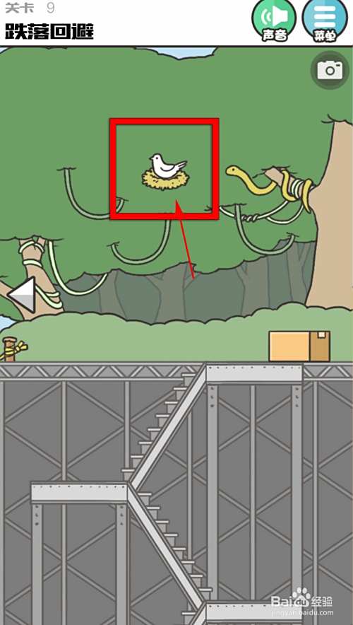 本关的任务是跌落回避,直接去右边场景,点击鸟窝把鸟赶走。