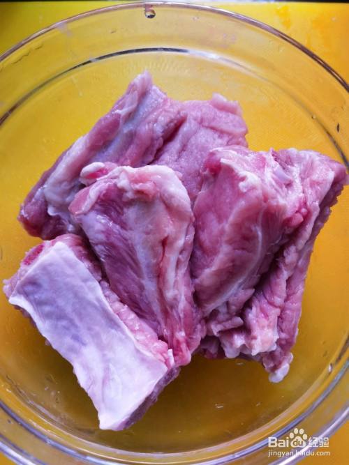 买回来的排条冷水浸泡30分钟,然后清洗干净备用