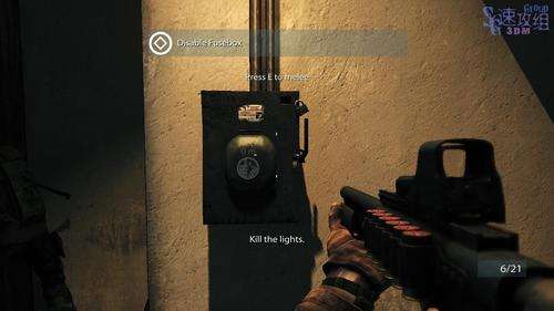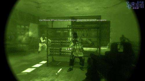 3进入屋里之后在电闸这里按X打烂,之后屋里一片漆黑,按Z打开夜视仪,然后跟着队友进门。