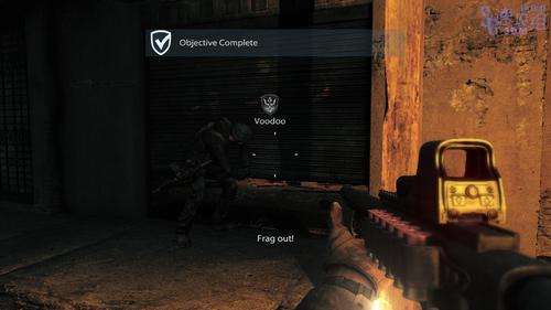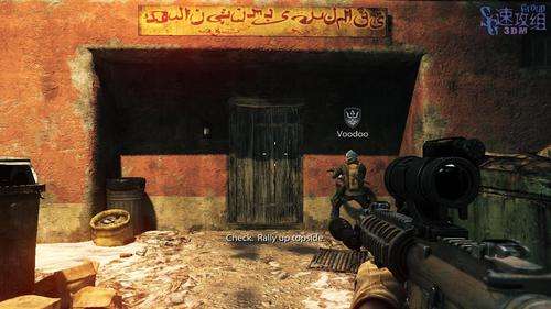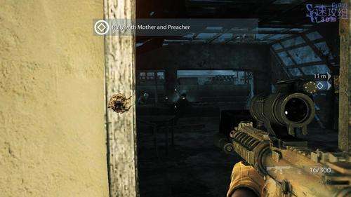 跟着队友穿过几个房间后来到室外,干掉四周的敌人后队友会用手雷炸开目标建筑院子的大门,进去之后有敌人从屋里破门而出,干掉后进去。 到目标的屋门口后变成自动控制,进入屋里发现了有人坐在椅子上,虽然不是我们要找的人,不过他身上绑有炸弹,躲过爆炸之后跟着队友离开屋子。 来到外边后直直走,看到敌人后不要急着过去,会有敌人的RPG射过来,然后我们到左边包抄敌人,敌人机会都是背对着我们的。