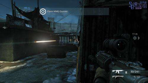 和队友杀上几层楼之后,干掉这个屋里的敌人和对面楼上的敌人后右边的门会有队友进来,跟着队友出去到对面的楼。 前边有敌人的机枪射击,蹲下或者趴下,利用掩体,到敌人的右边绕后路干掉敌人,不过在一个楼顶上被敌人的RPG轰了,