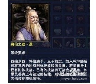 三个灵兽准备好后,买个将伯之助·盈,把它放入乾坤袋,勾选宝宝C,把C的三个技能都转到将伯之助·盈上。然后我们从商店取出B,打开乾坤袋,勾选B,将将伯之助·盈的三个技能转到附体B上,转之前注意看下破天是不是锁住了。这样我们就可以得到4个有用技能了。