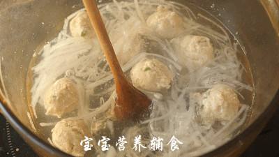 16下入小丸子,多煮一会,等到白萝卜丝变透明,丸子熟透,香味飘出来就可以出锅啦。