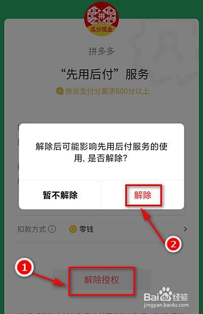 7、微信授权解除,拼多多先付后用功能即可关闭