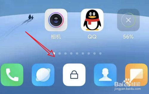 回到桌面,可以看已经有锁屏图标了,为了让在任意一屏上都可以点击锁屏,我们可以把锁屏图标移到下方的任务栏。