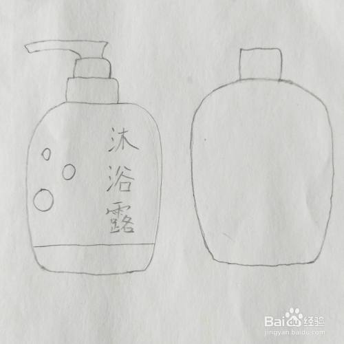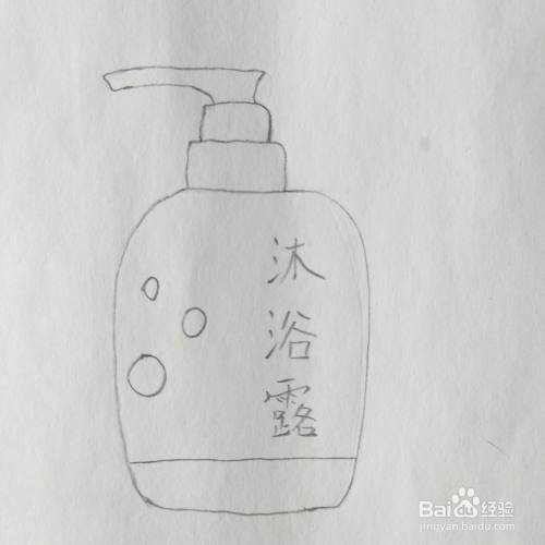将瓶子画出线条和写出沐浴露汉字,如下图所示。