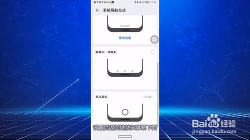 切换到导航设置界面后,找到并设置屏幕内三键导航这个方式,设置后返回键就在屏幕下面。