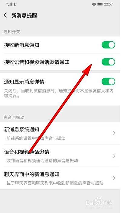 开启接收语音和视频通话邀请通知选项,即可在锁屏状态下接受微信视频聊天了。