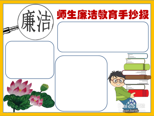 接着在空白的地方画三个文本框,书写和师生廉洁教育手抄报相关的文字内容.