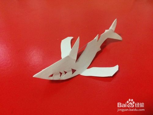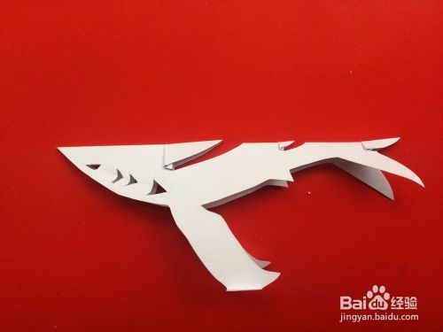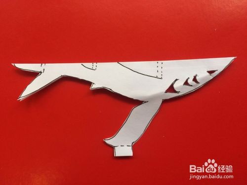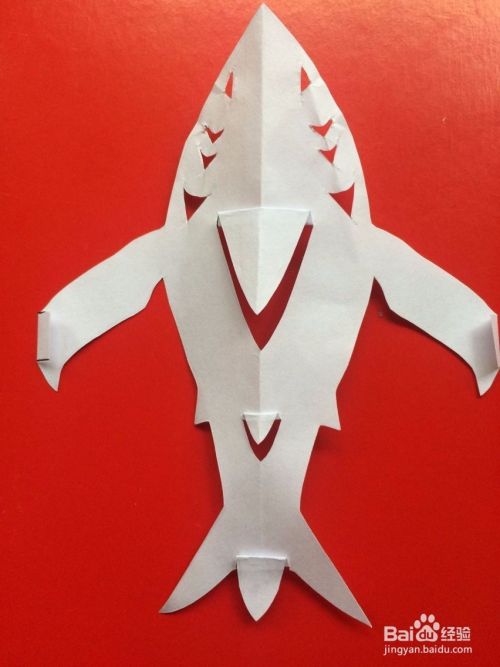 然后展开,分别把左右两条鱼鳍整理一下,这样一条鲨鱼就折剪完成了。