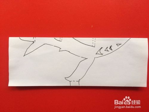 然后在折叠处画上大白鲨的图案。