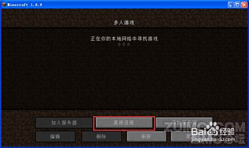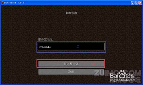 方法一:打开我的世界,点击多人模式,在点击直接连接,在那里们输入我的世界服务器 的IP地址 ,在点击连接