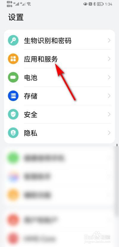 进入手机设置页面,点击应用和服务。