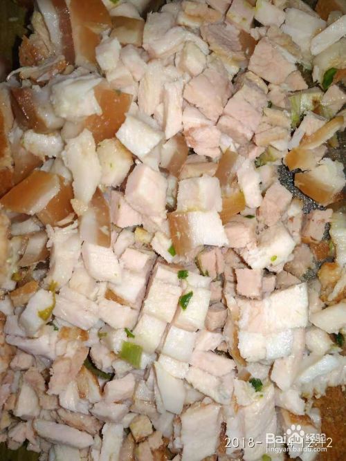 熟肉切碎,韭菜洗净切碎