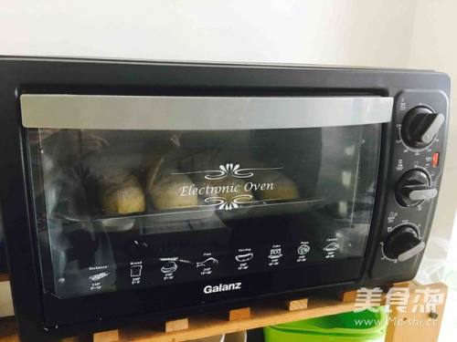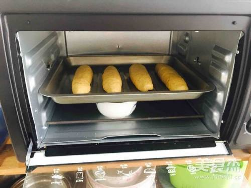 10将面包放入烤箱进行二次发酵,下面放一杯热水。(如果烤盘空间够大,也可将热水放在烤盘上)