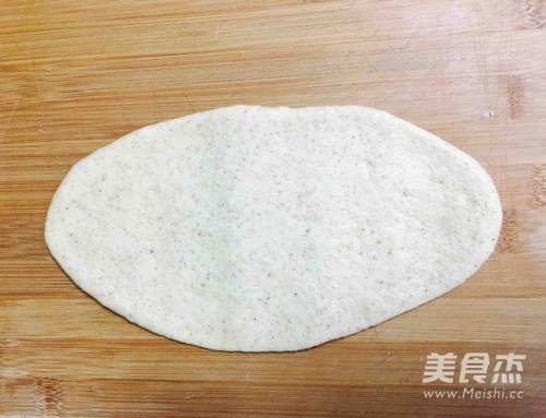 9擀完后两遍稍微折叠整理一下,便形成了这样的椭圆形。