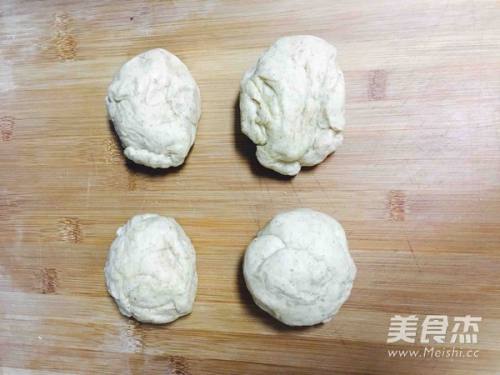 7将面团排气取出,均匀分成四份。(因为一会还要擀,所以面团没处理,有点丑,多多包涵,颗颗颗…)