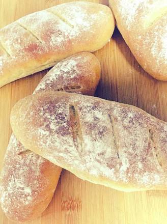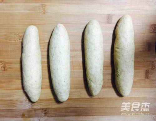 8用擀面杖擀成这种橄榄形,建议擀一次后折叠,再擀一次,这样面团气体可充分排出,做出来的面包更加松软。