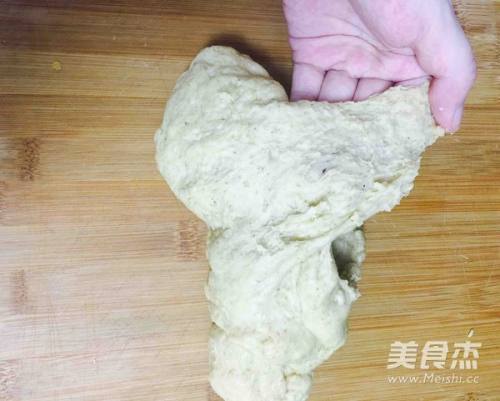 4加入黄油搅拌完毕后,拿出面团,大概会形成这个样子的膜。因为是全麦面粉,所以很难拉出手套膜,这样做出来一样很好吃。