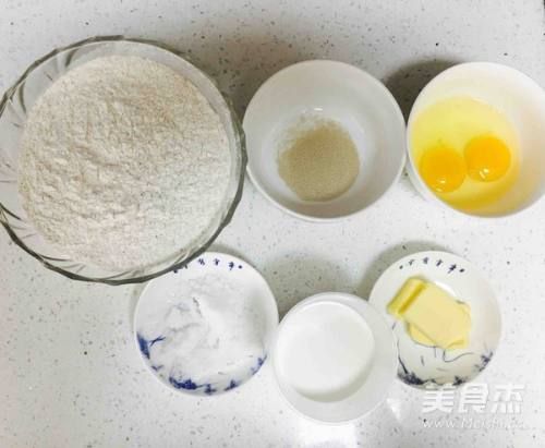2将除黄油外的所有材料放入面包桶。先放入液体再放固体,面包粉放入后,在其中间挖一个洞放入酵母粉。(我是用一点温水先将酵母粉融化看看和干酵母粉有何不同,可省略此步骤,事实证明发酵效果并无明显不同)