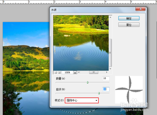 调整数量和起伏,把样式选择为围绕中心,确定。