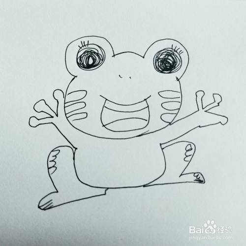 第三步,我们来画卡通青蛙的脸部两边的纹路。