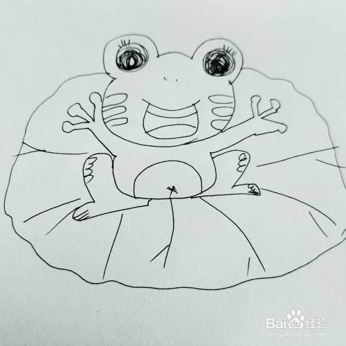 第六步,我们来画卡通青蛙身下的荷叶。