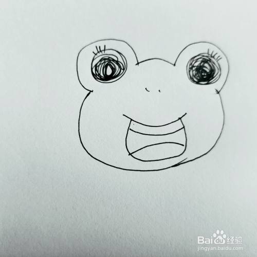 第二步,我们来画卡通青蛙的头部和大嘴巴。
