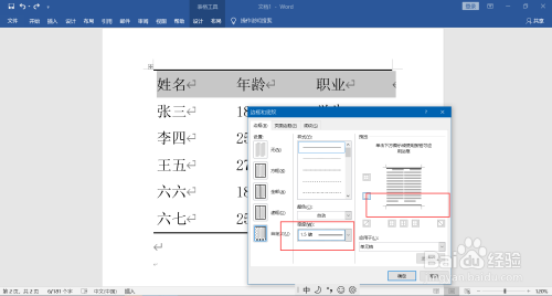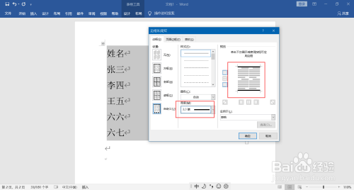 在打开的对话框里选择“边框”界面,在宽度位置选择粗的线条,并点击预览框里的上下两边,添加粗线。