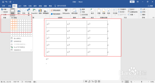 点击菜单栏上“插入-表格”,在文档内插入表格。