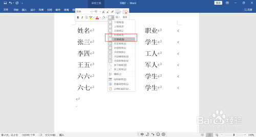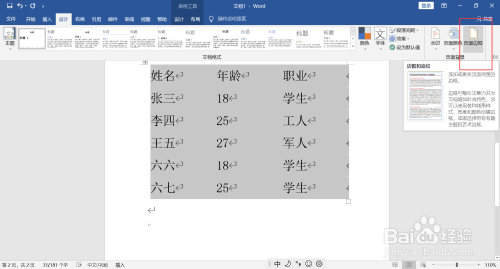确认对话框后,选中第一行,点击菜单栏上的“设计-页面边框”,在边框界面,选择细线,添加到预览框下边。
