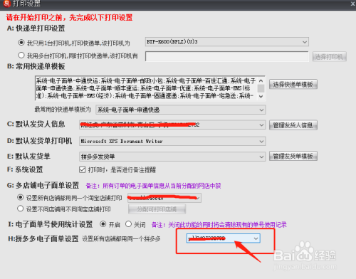 设置使用那个拼多多账号的电子面单。