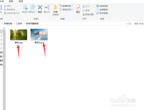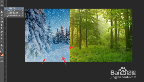首先为了方便演示,小编从网上找到两个素材,一个是春天森林的图片,一个是冬天森林的图片,如下图所示。