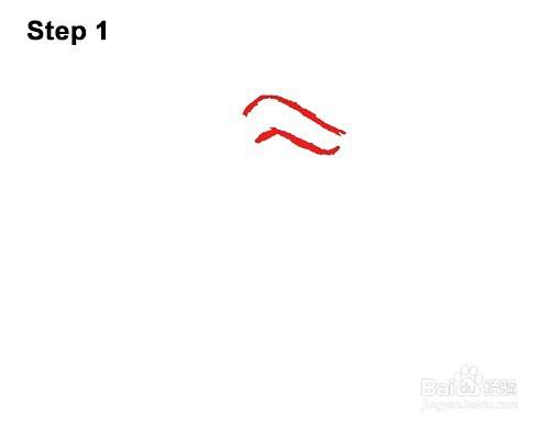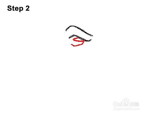 第1步:为霸王龙的眉毛画一条短斜线。将左尖端向下弯曲,向右弯曲以强调皱纹的眉毛。在上面再加一条倾斜的线,用于厚厚的眉骨。