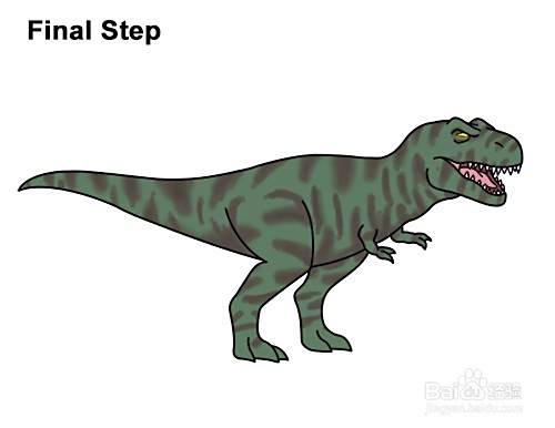 最后一步:使用彩色铅笔,标记甚至蜡笔为暴龙绘画颜色!使用棕色作为身体的浅色底座。现在在棕色上添加绿色。您可以在整个身体上使用单一颜色进行更简单的绘制。添加更多浅棕色并将颜色混合在一起。你可以用任何你喜欢的方式为你的恐龙涂色。口内使用深红色或棕色,舌头使用粉红色,眼睛使用黄色。您还可以使用深褐色在身体各处添加随机条纹。不要忘记暂停视频以自己的速度绘制。