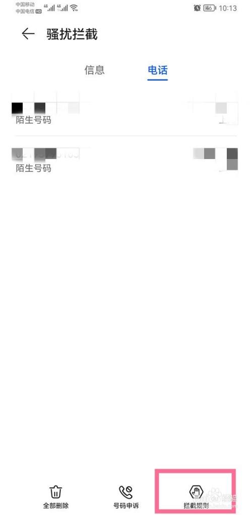 3、点击【电话拦截规则】或【短信拦截规则】,关闭拦截开关即可。